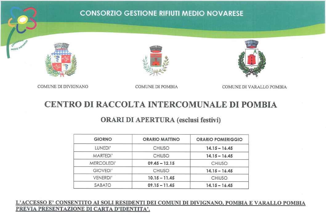 Cittadini residenti nei Comuni di Divignano, Pombia e Varallo Pombia