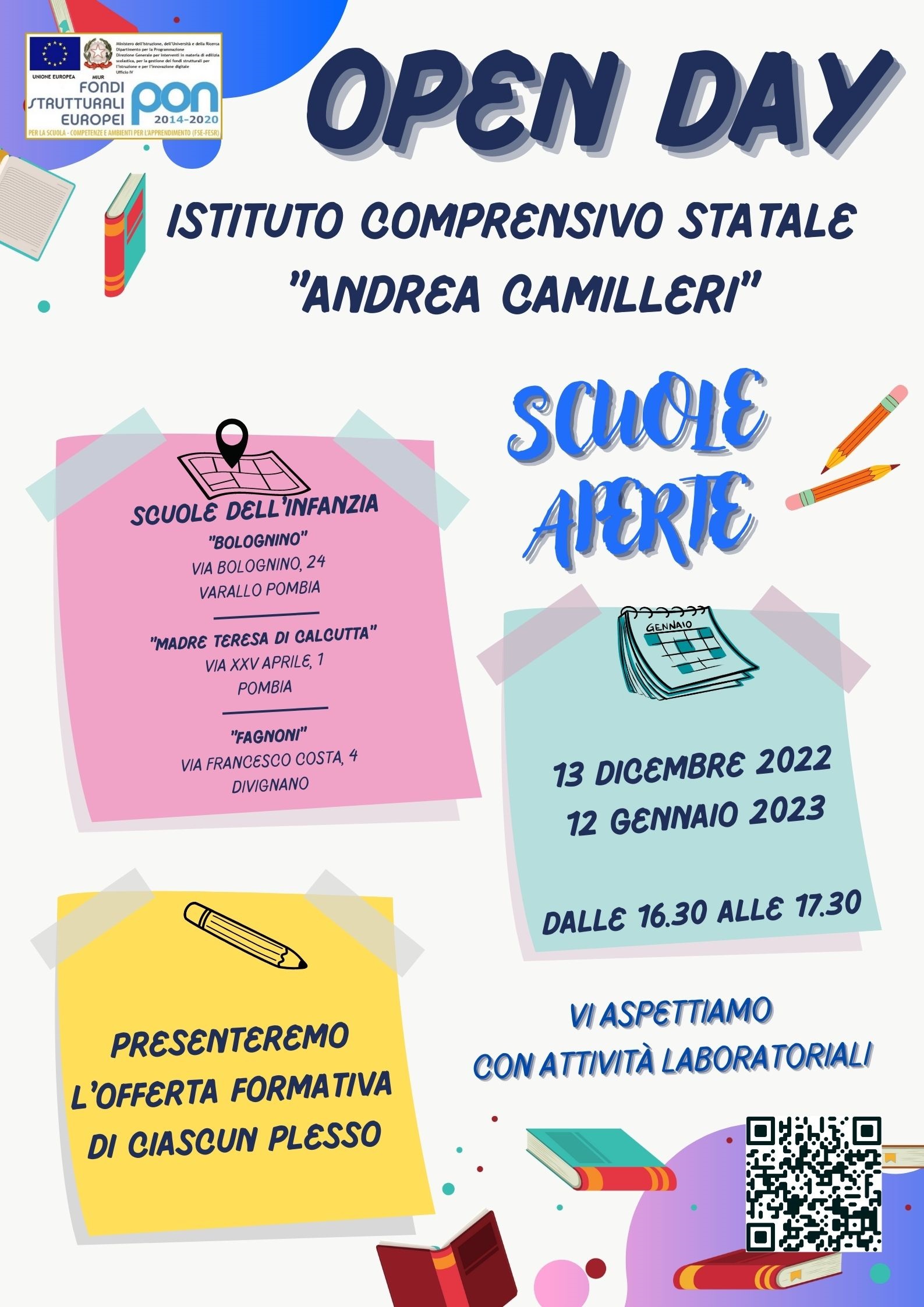 Si pubblicano gli avvisi degli open day dell'Istituto Comprensivo A. Camilleri di Varallo Pombia
