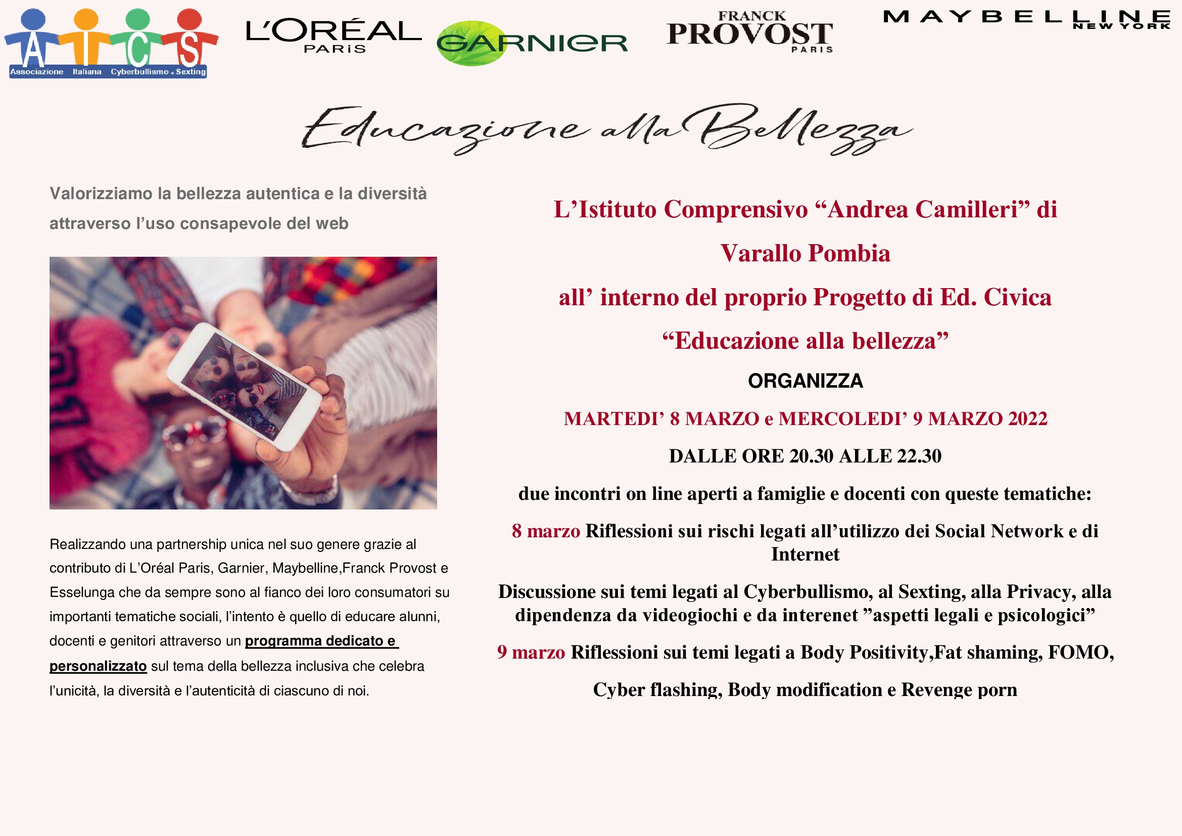 Si pubblica , locandina, circolare e calendario con link per accedere alle serate di cui al progetto indicato in oggetto rivolto a tutte le famiglie.